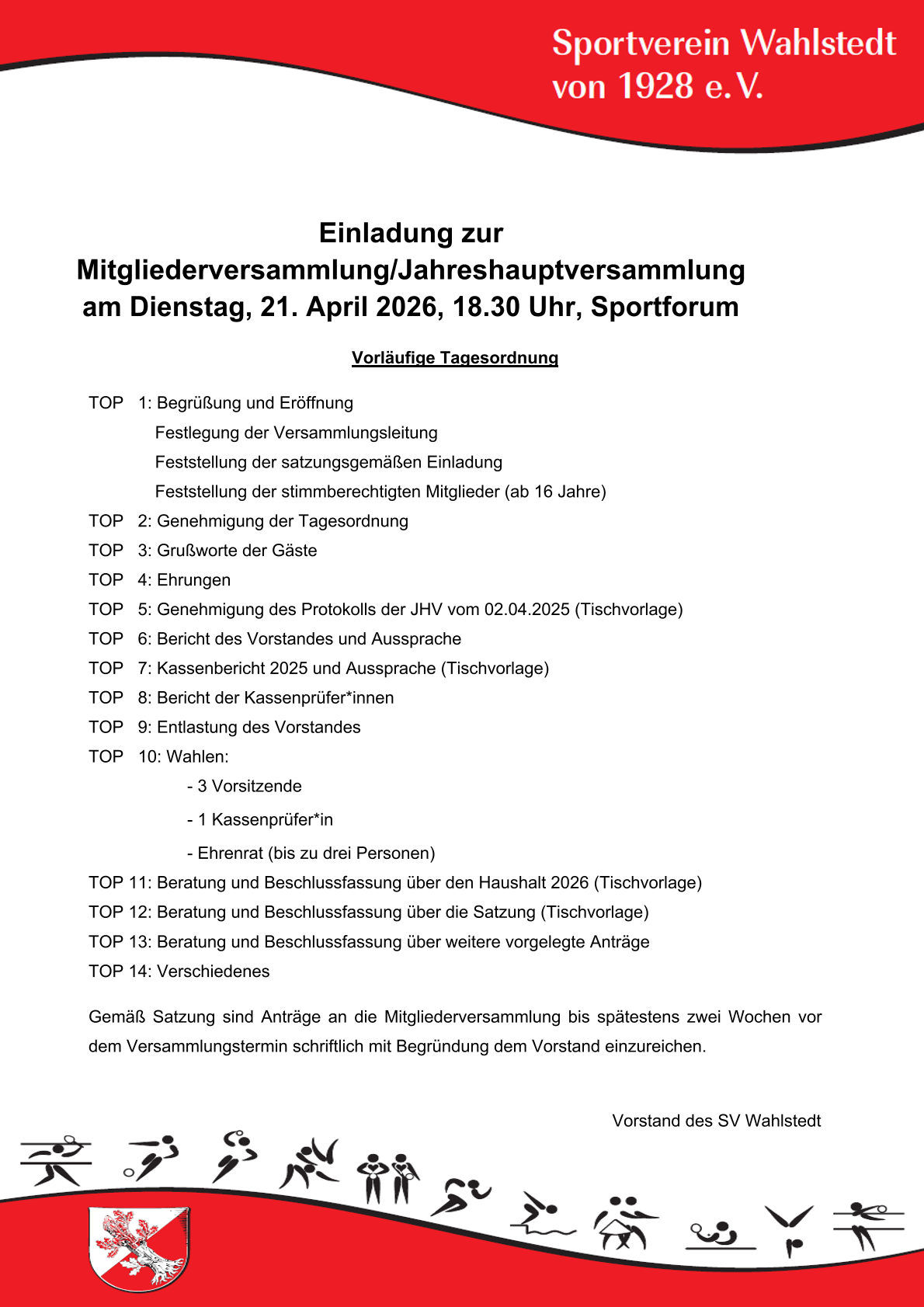 Jahreshauptversammlung 21.04.2026